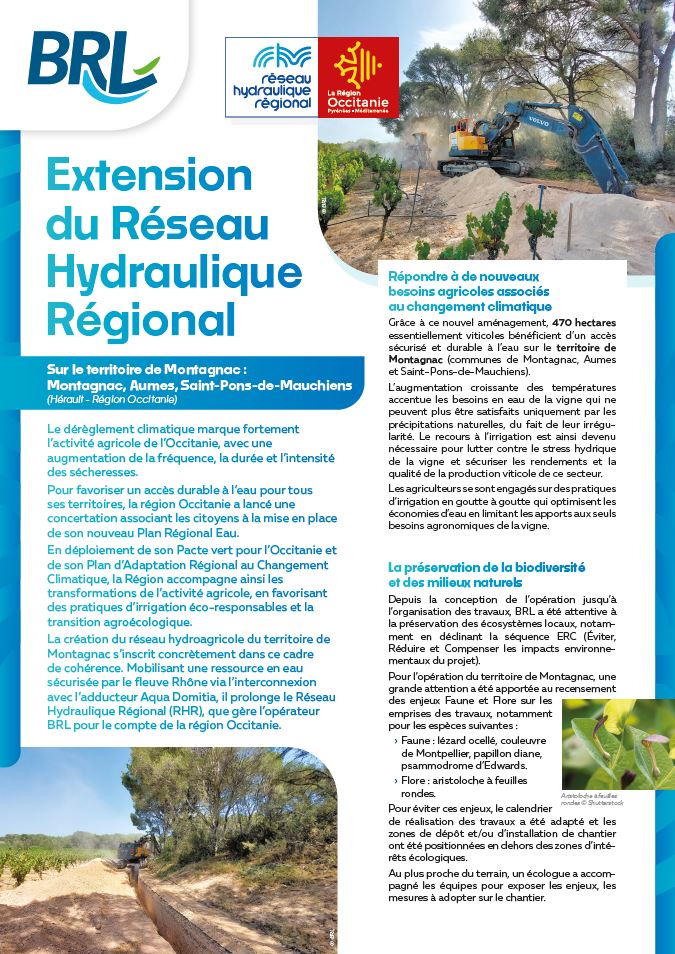 Grâce à ce nouvel aménagement, 470 hectares essentiellement viticoles bénéficient d’un accès sécurisé et durable à l’eau sur le territoire de Montagnac (communes de Montagnac, Aumes et Saint-Pons-de-Mauchiens).